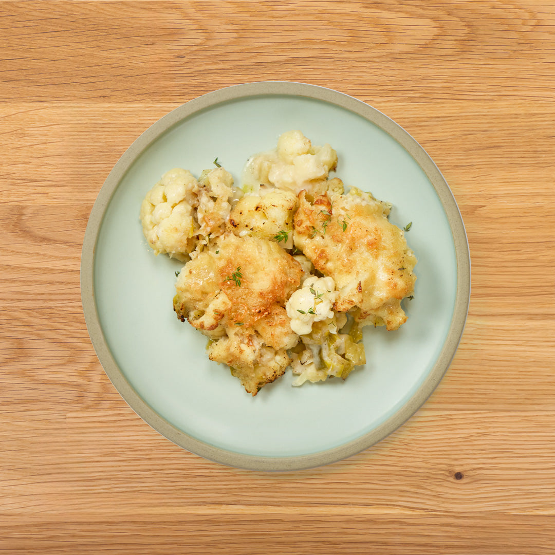 Cauliflower baked in a rich Gruyère and cheddar sauce, topped with golden breadcrumbs and a hint of nutmeg. Seconds? Absolutely.